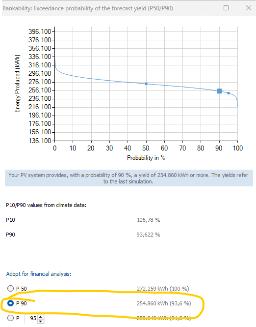 Dear, We need a P90 report for our customer. Is it possible to present the P90 results in the presentation of the "PV system energy balance" instead of the P50 results?