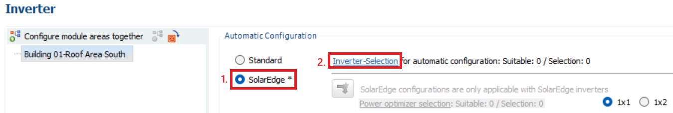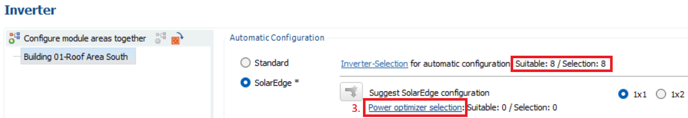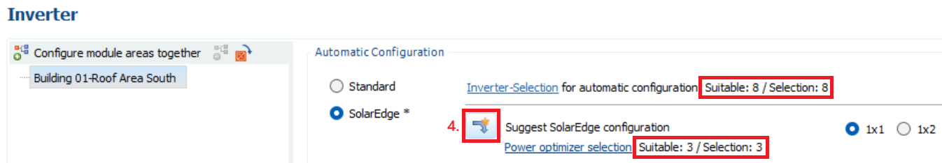 You can then use the button, which is now active, to generate an automatic configuration proposal featuring SolarEdge inverters and SolarEdge optimizers: