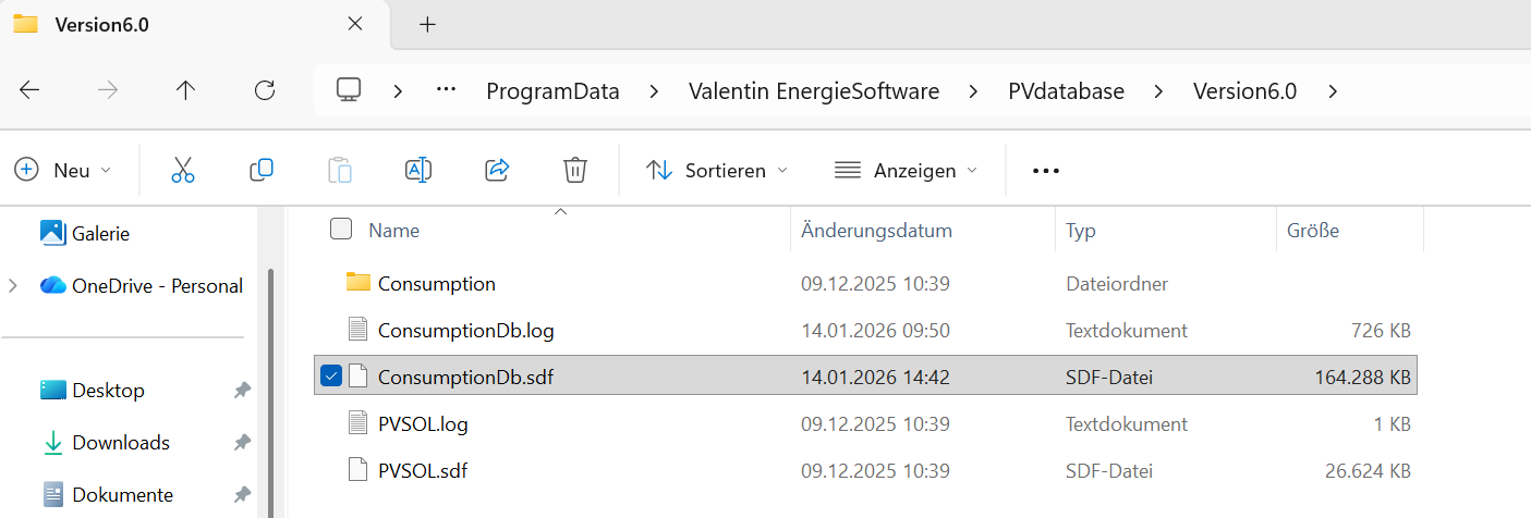 Your imported load profiles are saved in the file "ConsumptionDb.sdf", which you can find in the following folder: C:\ProgramData\Valentin EnergieSoftware\PVdatabase\Version6.0