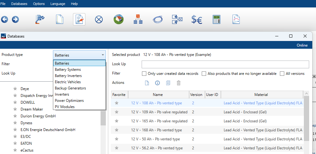 Mark Posted Friday at 02:56 PM Report Posted Friday at 02:56 PM Good Day, can someone please assist. I need to create a project with a Hybrid Inverter and a separate battery connected to the Inverter. NOT a Battery System with a battery inverter. The battery selections are in the database that I must use but nowhere is there a selection of the free standing battery. Which system type must be used? Is it the one I highlighted below? In the database the batteries are there, but where do you add them? Quote