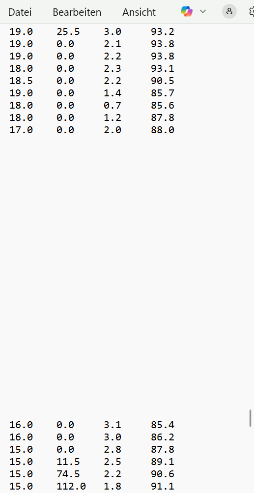 hotline_oh Posted December 3, 2024 Report Posted December 3, 2024 Dear Leonie, Thank you for your inquiry. The name of the location should be in inverted commas: A few entries were missing in lines 1626 to 1629. We have copied in the entries from the previous day. We were then able to import the climate data. Enclosed you will find the file we edited. It looks like this in the selection: Bruckneudorf.dat 1 Quote